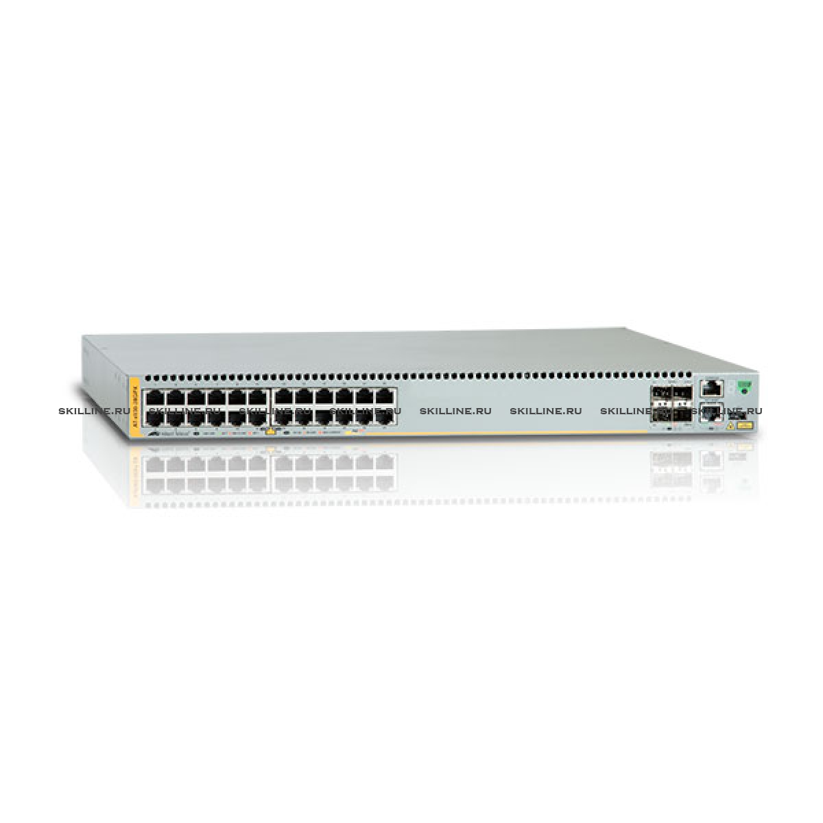← Коммутатор Allied Telesis 10/100/1000BASE-T ports x 24 (Combo) - SFP slot x 24 (Combo) - SFP/SFP+ slots x 4. Console port x 1 (RJ45) - Dual Power Supply slot - Dedicated Stacking port x 2 (Rear panel) (AT-x930-28GSTX)